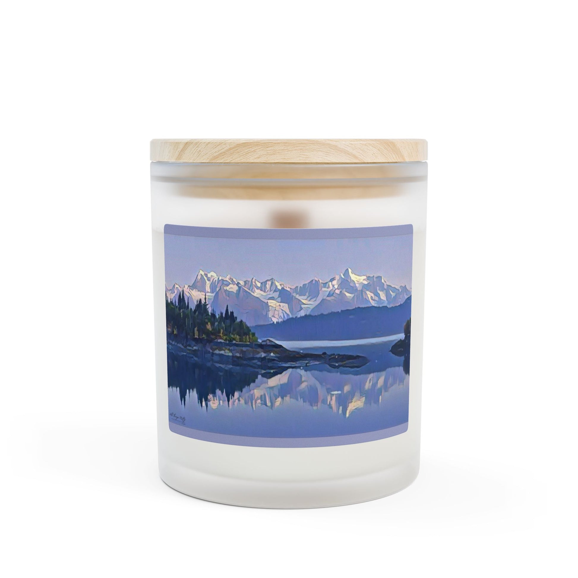 11oz Frosted Scented Glass Candle — Mountain Glacier Ocean Abstract Watercolor Wilderness Landscape