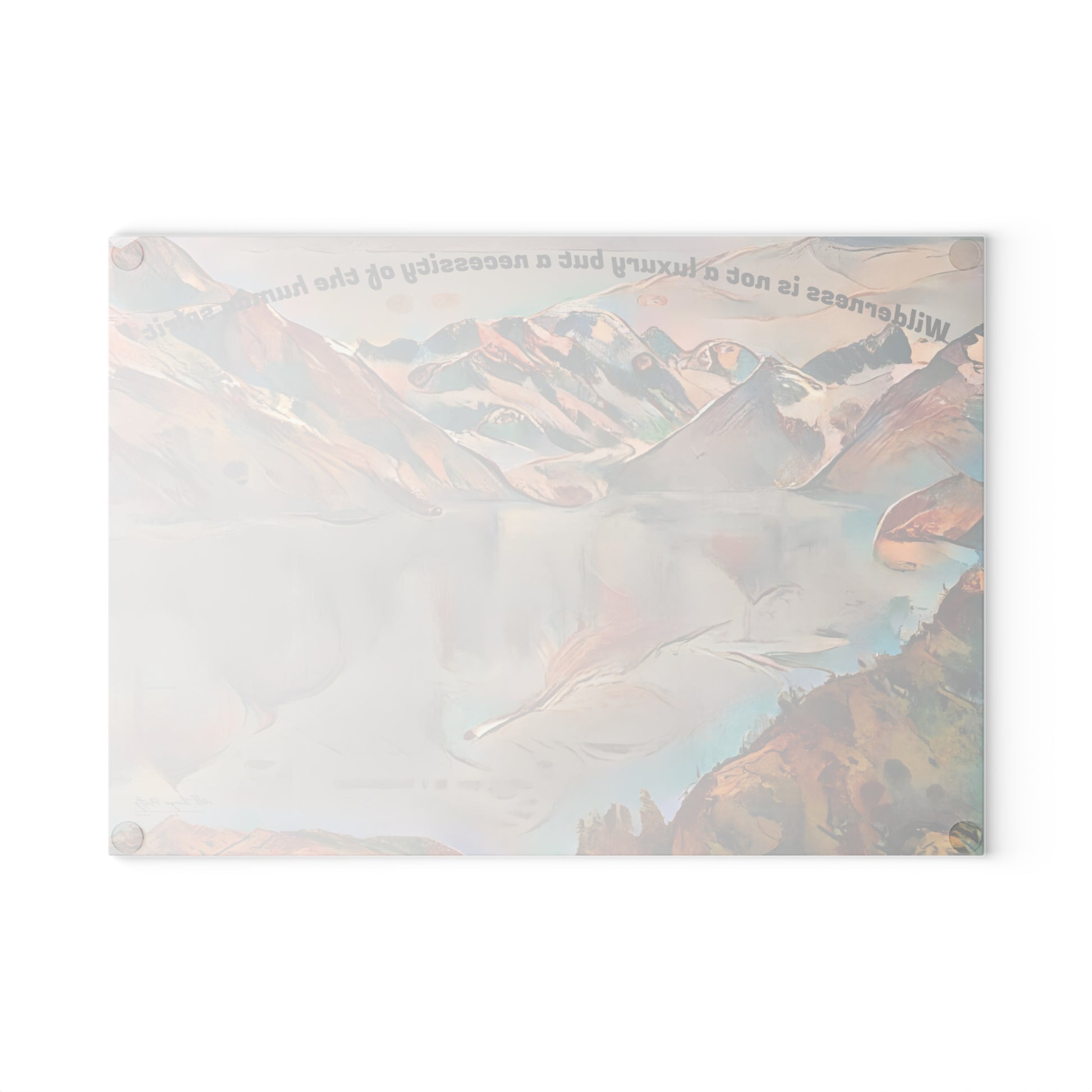 Glass Cutting Board with Mountain Glacier Abstract Art — "Wilderness is not a luxury" Scenic Kitchen Décor