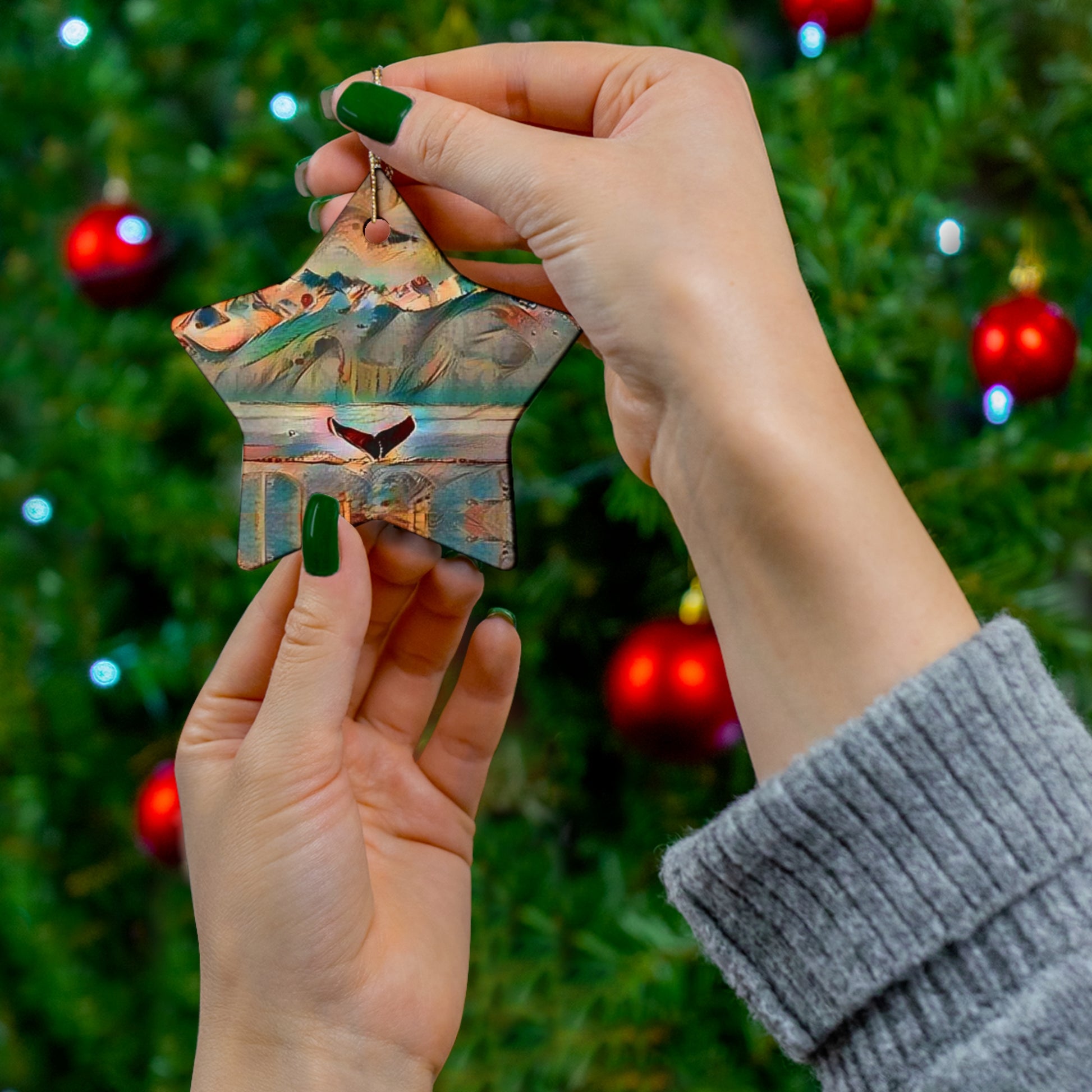 Star Ceramic Ornament — Whimsical Whale Tail Coastal Art Holiday Decoration
