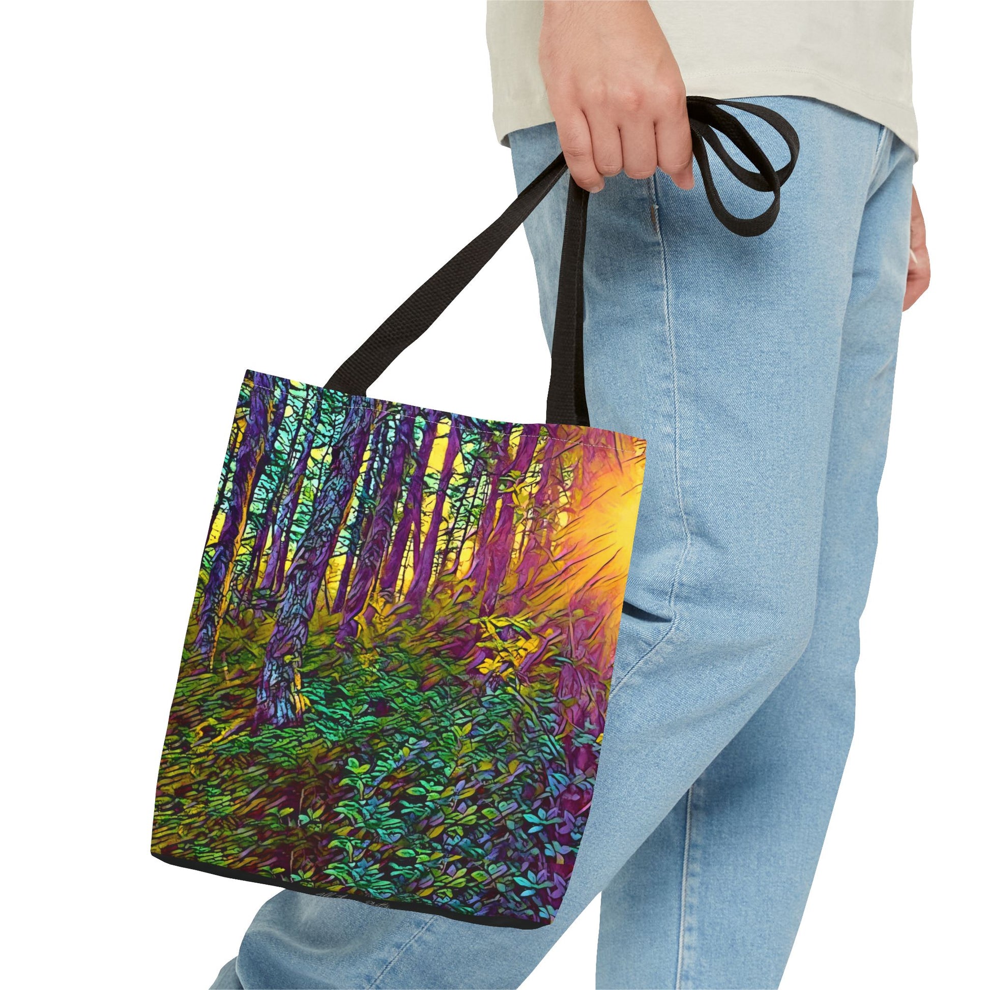 Sunlit Forest Tote Bag — Vibrant Nature Wilderness Abstract Art