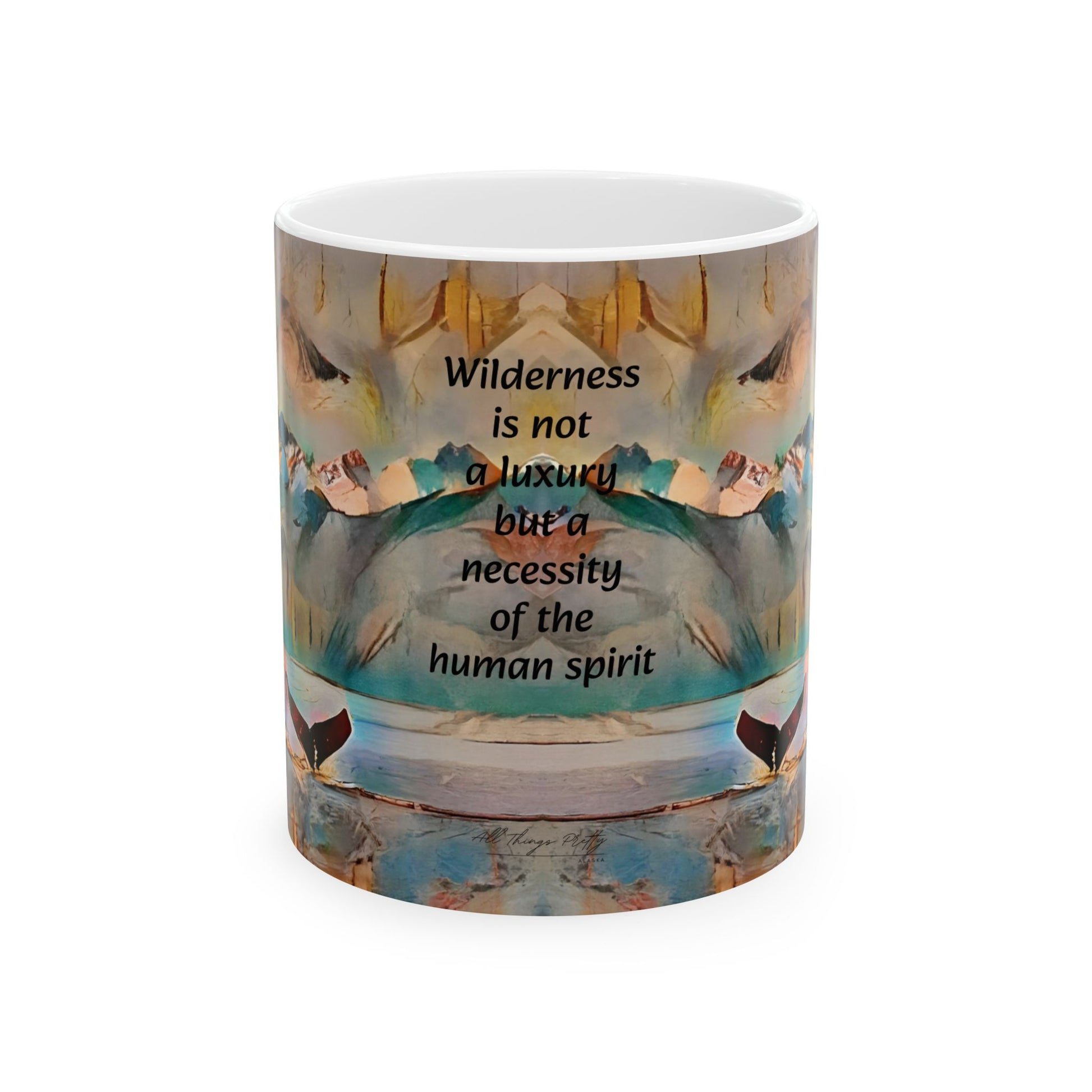 Wilderness Whale Quote Mug — "Wilderness is not a luxury but a necessity of the human spirit" Ceramic Coffee Cup (11oz/15oz) Lefty Righty